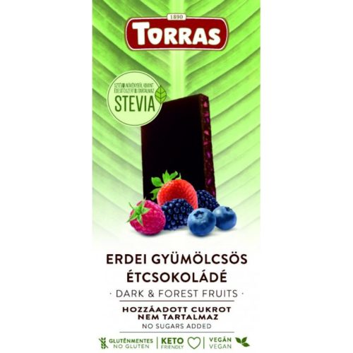 TORRAS ERDEI GYÜMÖLCSÖS ÉTCSOKOLÁDÉ HOZZÁADOTT CUKOR NÉLKÜL, STEVIÁVAL125 G