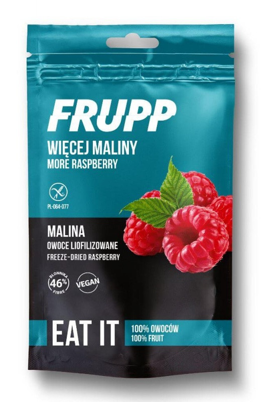 A FRUPP Liofilizált málna 100%-ban természetes gyümölcsből készült, hozzáadott cukor, színezék és tartósítószer nélkül. A fagyasztva szárítás (liofilizálás) kíméletes eljárás, amelynek során a víztartalom elpárolog, miközben a gyümölcs megőrzi vitaminjait, ásványi anyagait és intenzív ízvilágát. Az eredmény: egy ropogós, frissítő és édes-savanykás falat.