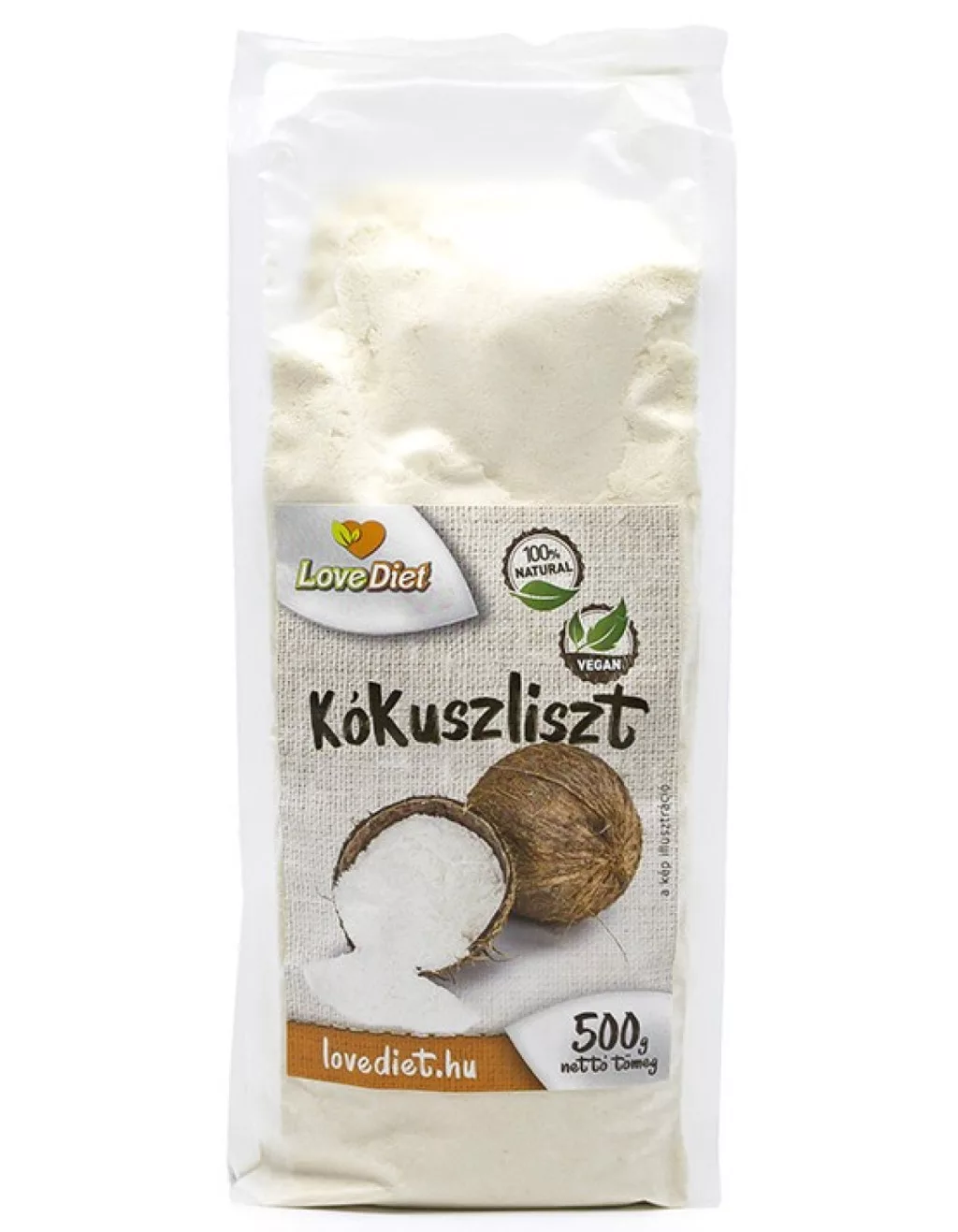 A Love Diet kókuszliszt szárított és finomra őrölt kókuszhúsból készül, így természetes, gluténmentes lisztalternatíva a hagyományos búzaliszt helyett. Magas rosttartalma hozzájárul a normál bélműködés fenntartásához és a teltségérzet kialakulásához, ezért népszerű alapanyag diétás és szénhidrátcsökkentett étrendben is.